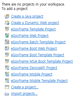 eGovFrame 프로젝트가 생기고 평소 eclipse와 다릅니다.