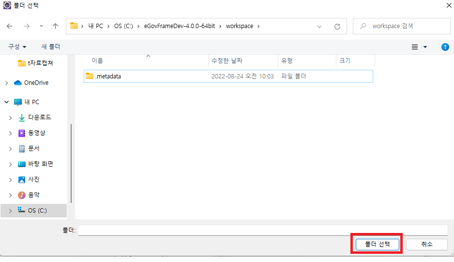 경로 : C:\eGovFrame-4.0.0\bin