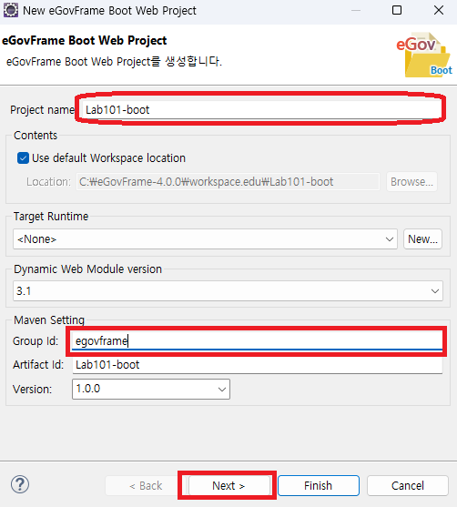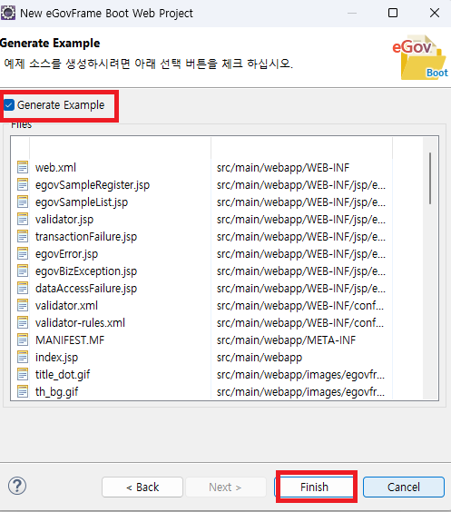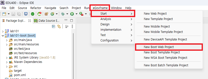 eclipse 에서 eGovFrame>Start>New Boot Web Project