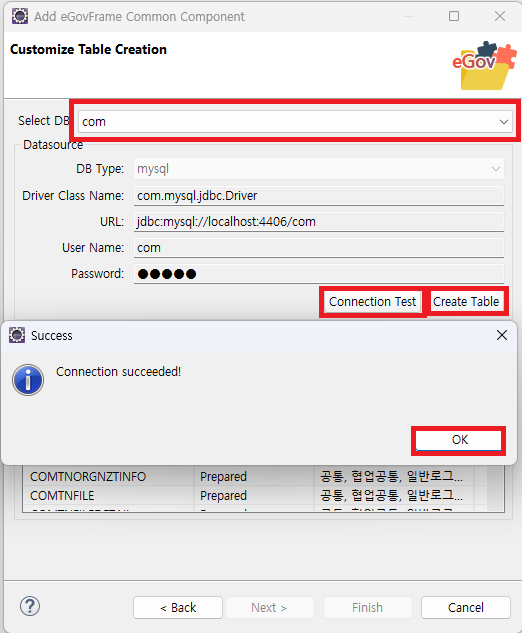 DB 선택 - Connection Test - create Table - 확인