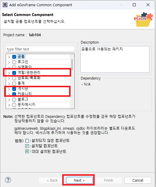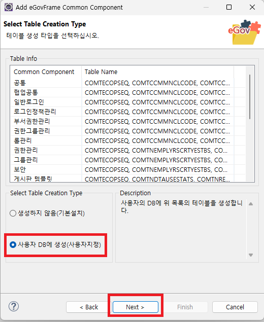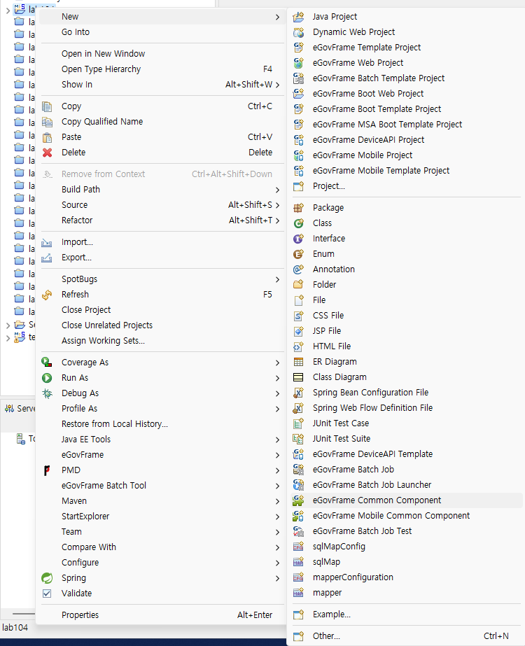 프로젝트 선택 마우스 우클릭> New > eGovFrame Common Component 선택