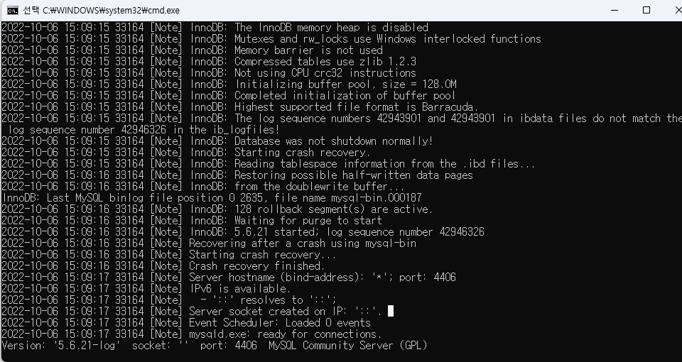 MY SQL 3306포트 오류 조치