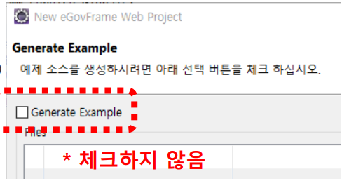 Generate Example 체크하지 않을꺼라 바로 Finish 누르고 넘어 가시면 됩니다.