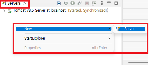 아래 창이 안 뜬다면 상단의 Window - Show View - Servers를 누릅니다.